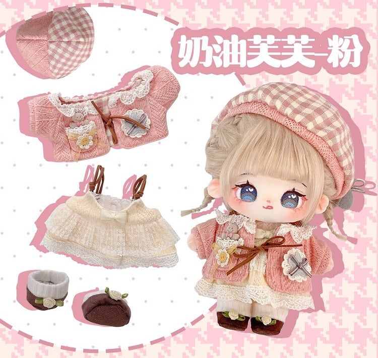 【20cmぬい服】帽子とカーディガンのガーリーコーデ 20cmぬいぐるみ用 着せ替えぬいぐるみのお洋服 女の子 お出かけ ワンピース