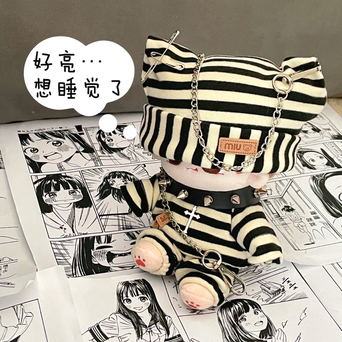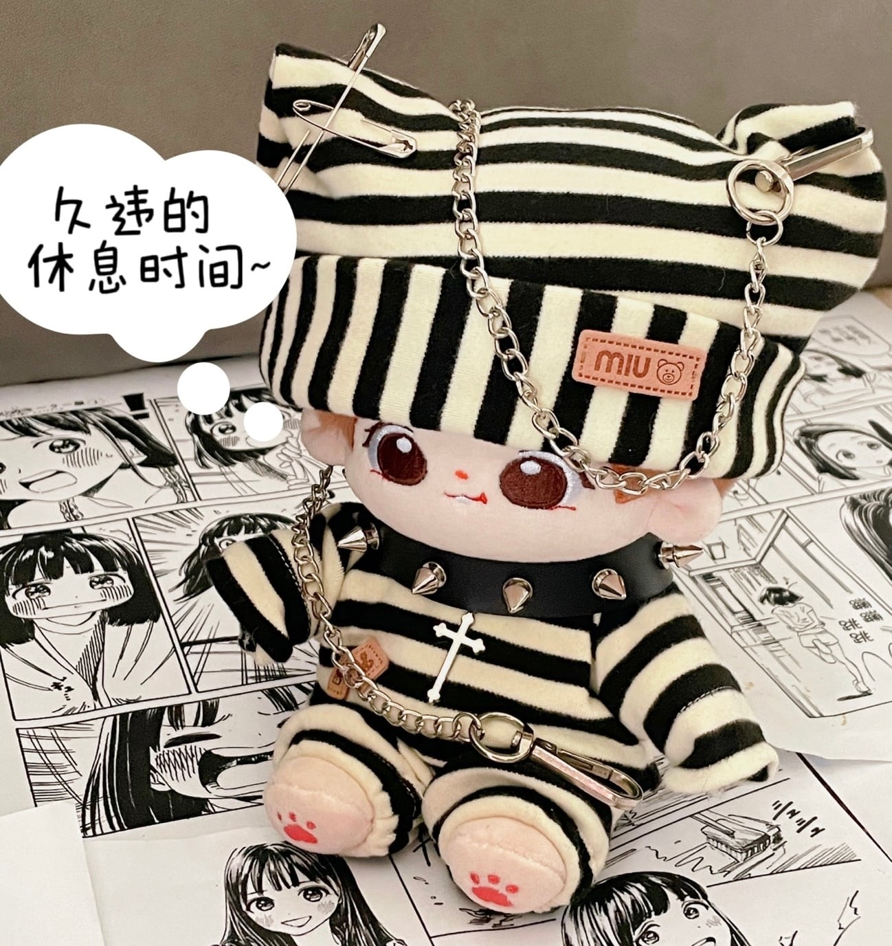 【20cmぬい服】囚人服風ワルイココーデ 20cmぬいぐるみ用 着せ替えぬいぐるみのお洋服 無属性 コスプレ ボーダー