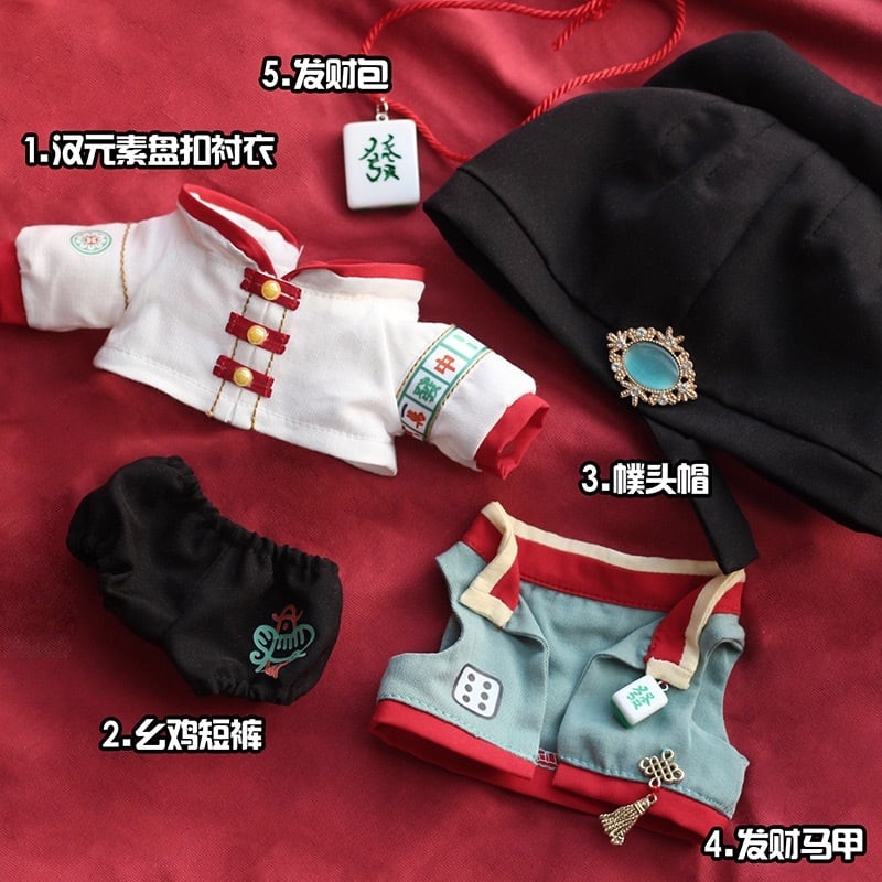 【20cmぬい服】アジアンな麻雀コーデ 20cmぬいぐるみ用 着せ替えぬいぐるみのお洋服 日常着
