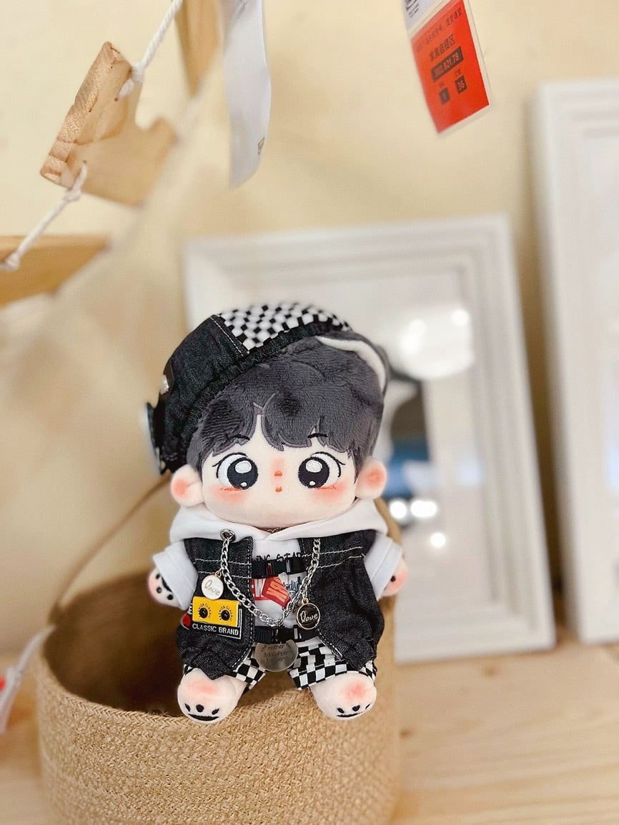 【15cmぬい服】白パーカーの重ね着コーデ 15cmぬいぐるみ用 着せ替えぬいぐるみのお洋服 日常服 ストリート