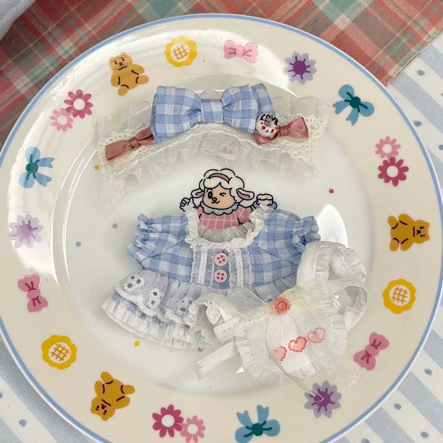 【10cmぬい服】ブルーチェックドレスコーデ 着せ替えぬいぐるみ labubu 棉花娃娃お洋服|fuji berry